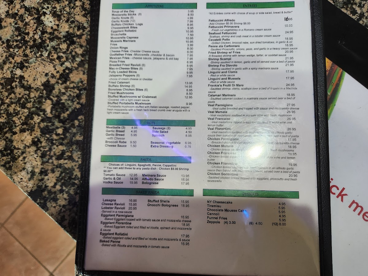 “ Great find while we were shopping in the area. Excellent and friendly service. We ordered the chicken parm special for two for 31.99. The food was excellent freshly made and very generous portion. ”