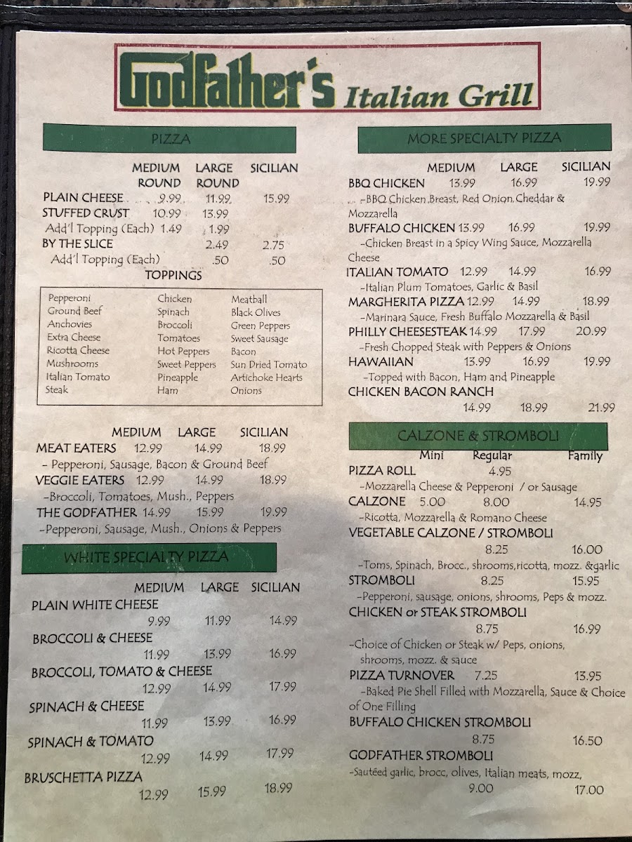 Welcome to Godfather's Italian Grill, where every meal feels like a family gathering at your favorite Italian relative's home! Nestled in the heart of Mays Landing, NJ, this delightful eatery serves up a feast that will transport your taste buds straight to Italy. With an impressive array of gourmet pizzas, hearty pasta dishes, and mouthwatering sides, Godfather's is committed to delivering quality in every bite.